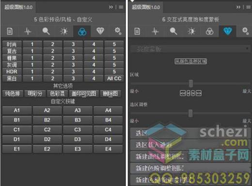 本面板由以下3种面板合体制作而成,具体功能教程请参考相应的面板: