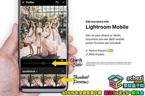 您将获得本机和DNG移动预设!即使没有订阅,您也可以使用DNG预设。如果您是订户,请使用本机移动预设来解锁不透明度/金额设置。
