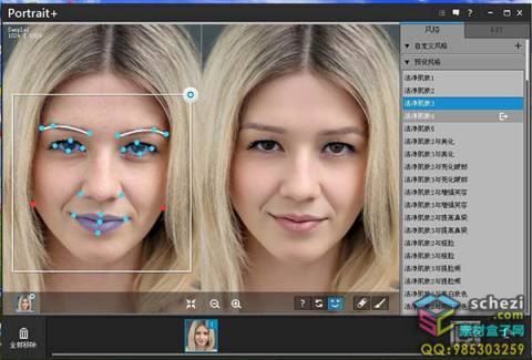 3.选择不同的照片风格:选择从多达20个预设集“磨皮”和“化妆”的风格,如净化灯,净化,美化,净化超薄面利用一个风格的数百张照片,在一次与一个单一的点击 应用多个样式多张照片的时间,然后批量出口所有。
