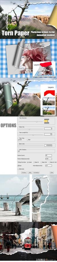 这是一个 Photoshop JavaScript, 可用于 Windows 或 Mac OS.使用此加载项, 可以为您的照片创建动画或静态撕纸效果.