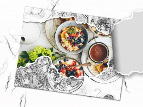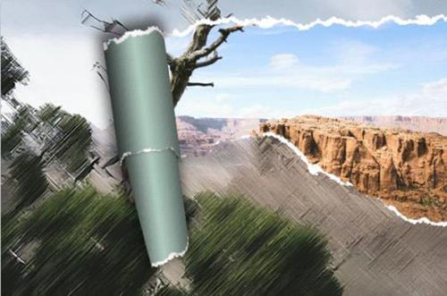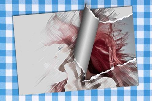 1. 用Photoshop 编写一个图像文件.此PSD文件包含至少两层, 顶层是填充或绘画撕裂区, 第二层是图片覆盖层, 下层的其余部分是背景.
