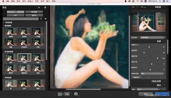 PS绘画滤镜插件Alien Skin Snap Art 4.1.0.151苹果汉化版 MacOSX可以在简简单单一个步骤中创建美丽、自然的绘画效果。它可以给任何一张图片渲染真实世界中包括油画、铅笔画、钢笔画、漫画等艺术效果,Snap Art是一个可以替代繁重的手绘工作并比动作和笔刷更有效的插件。