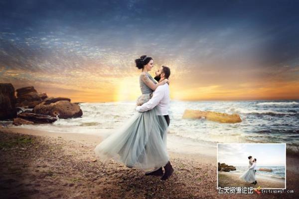 PS一键换天空PS扩展插件 PS一键换天空PS插件(精选227张婚纱大片天空素材)支持CC2019