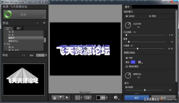 SHADOWLAB(阴影)滤镜用来产生物体的投射阴影和透视阴影,可以控制 阴影的方向、距离、不透明度色彩,还可以模糊阴影,增强景深感觉。