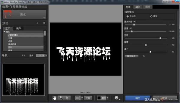DRIP(水滴)滤镜可为文本或图象填加各种水滴效果。