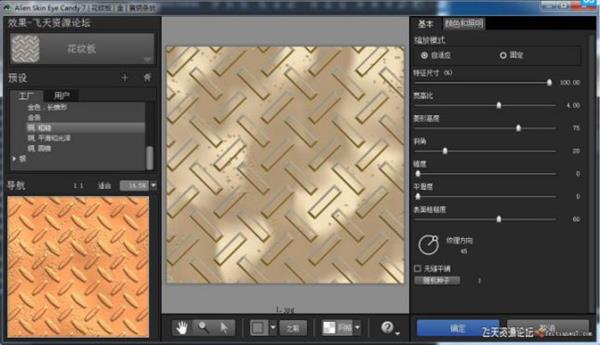 WOOD(木纹)滤境通过控制形变,年轮色彩,木节点及粒度来生成各种逼 真的木质效果。 笔者认为,WOOD滤境是EYE CANDY4000中最精采的滤境之一 ,它的逼真程度真是令人叹服。