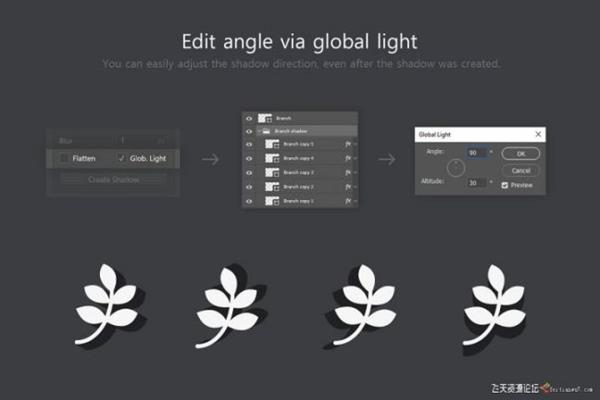 分享一款逼真的PS投影插件:Shadowify扩展面板(支持win/mac)。通常,PS自带的投影效果可能不太真实,而用Shadowify扩展面板却可以制作出逼真的投影效果,甚至可以通过全局光调整方向。您可以将您喜爱的阴影和模糊设置另存为预设,以供以后使用。