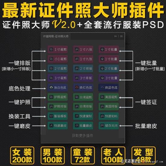 ps插件证件照PS扩展V2.0一键证照裁剪排版磨皮换装换底色扩展完整版支持PS2022-ps滤镜插件