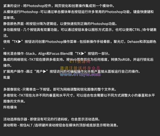 TK7面板专为Photoshop CC设计,可充分利用Photoshop CC可容纳的HTML5架构。以下是每个模块的一些功能。