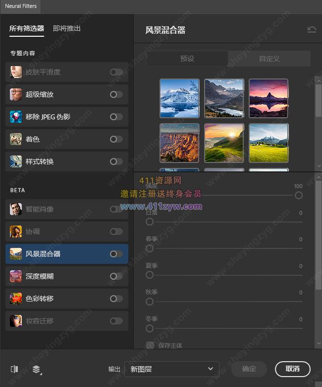 神经滤镜已更新,与之前版本不同,更新了样式转换和风景混合器,无下载提示,可直接使用