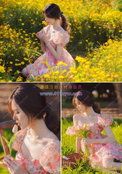 摄影RAW原图下载-花丛中的粉衣少女RAW原片5P,,调色修图练习素材
