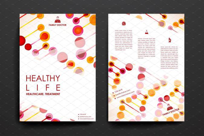 一套卫生保健风格的宣传册,海报模板。拥有美丽的设计和布局。