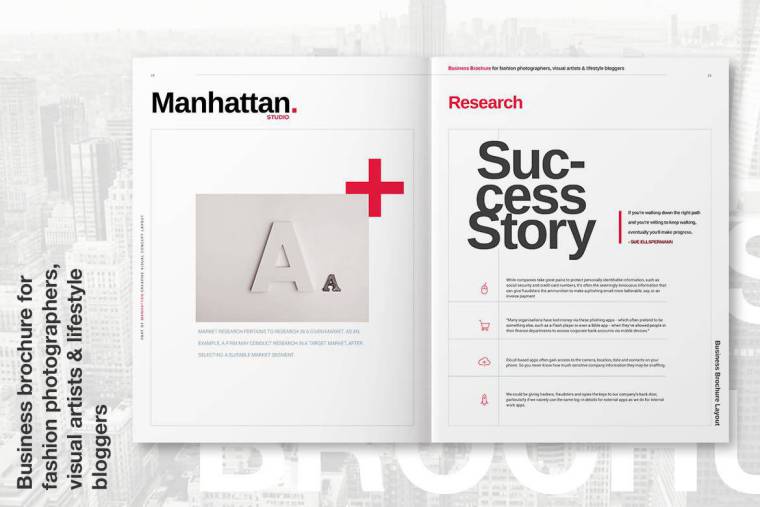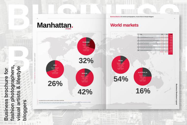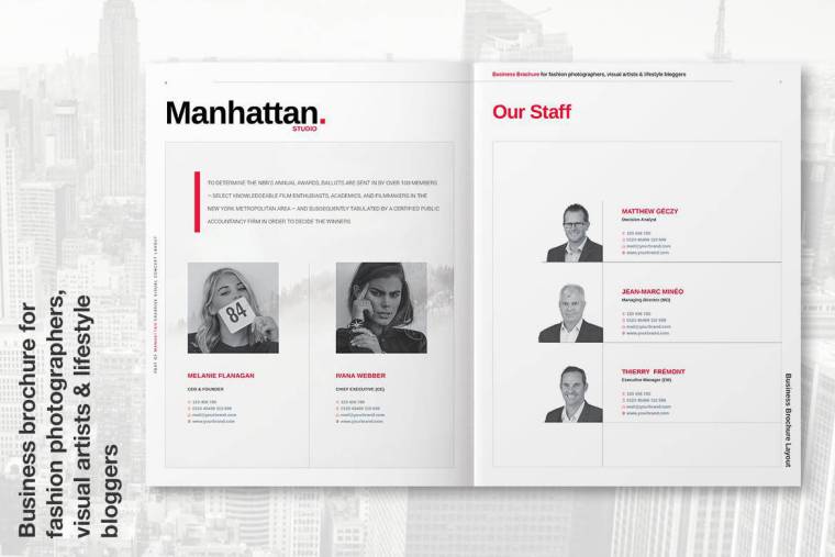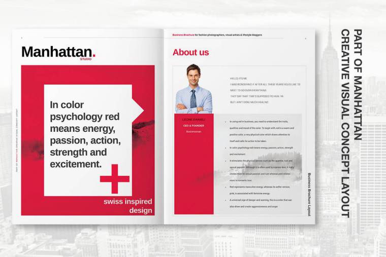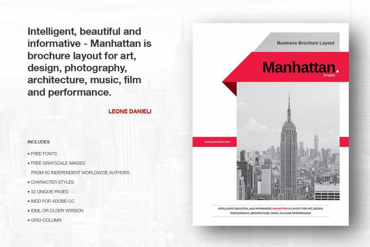 智能,美观和信息丰富的曼哈顿商业宣传册是艺术,设计,摄影,建筑,音乐,电影和表演的布局。