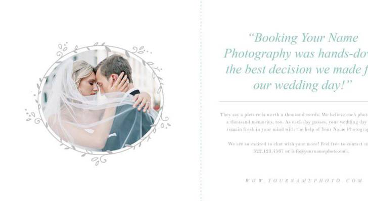 婚礼套餐手册画册模版*必须有Photoshop的工作知识才能使用这些模板。模板可以无限次使用。每个层都是完全可定制的,因此您可以轻松地更改颜色、文本和图像。