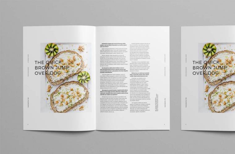时尚高端多用途的画册品牌手册房地产楼书时尚杂志菜谱设计模板(indd),时尚,设计,灵感,食品杂志的清洁和最小的杂志模板。包括A4和US Letter尺寸。只需放入您的文字和图片即可发布。节省您的时间和成本。