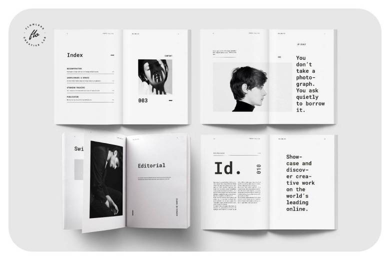 indesign通道-indesign排版模板黑白格调时尚创世摄影画册作品集自定义页面
