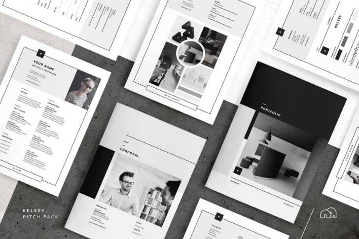 Adobe InDesign的Kelsey推销包提供了一个漂亮的最小设计,包括从推销到向客户收费所需的一切。