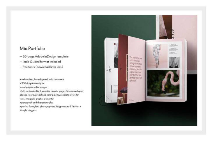 Mia catalog是一个可打印的杂志组合模板(不是模型),非常适合时尚和生活方式品牌、创意机构。