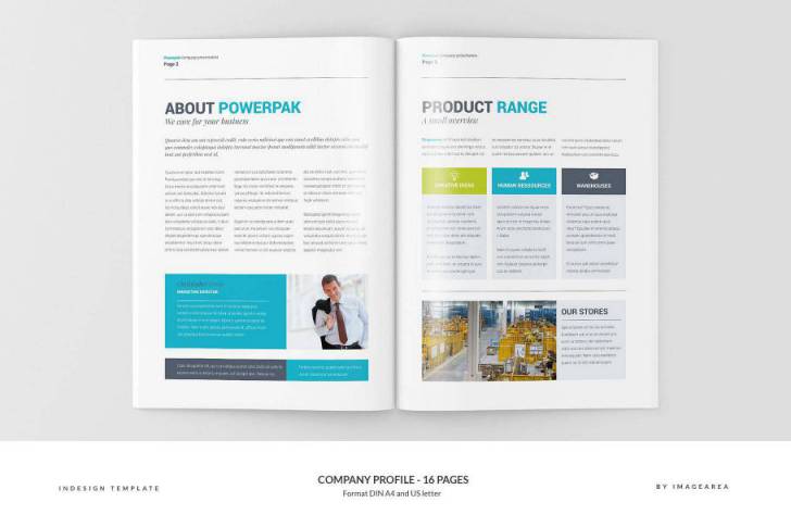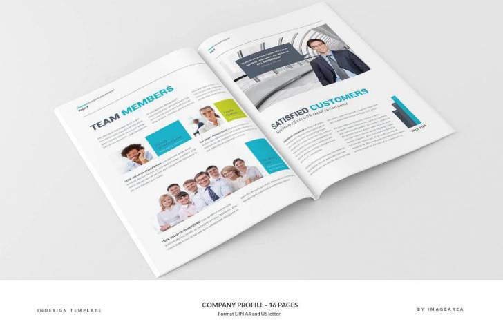 模板为16页的商业手册。格式是 A4 (210×297mm) 与3毫米出血线和字母(8.5 英寸 x 11 英寸)0.125英寸出血线。