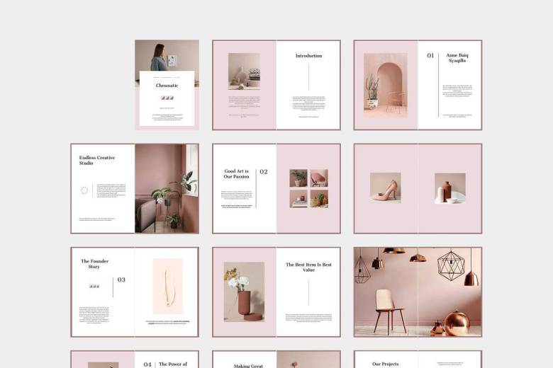 indesign导出字体-indesign排版模板粉色主题品牌和商业的提案 商业计划书设计
