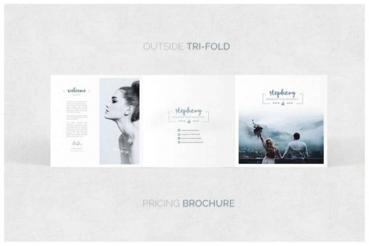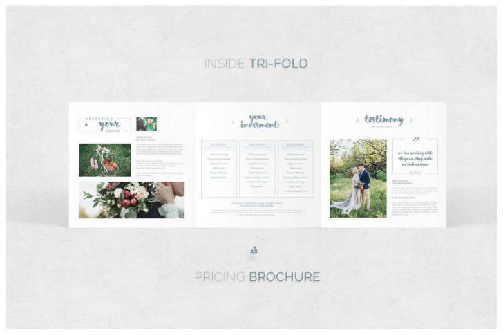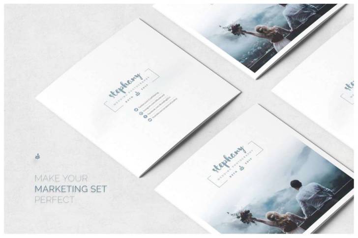 婚礼摄影三折页模板300 Dpi CMYK容易编辑Adobe PDF文件5x5x5 大小矢量元素出血线3 mm