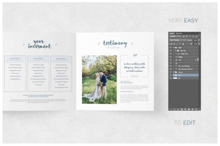 indesign 字体颜色-indesign排版模板时尚方形婚礼摄影三折页画册 Sq