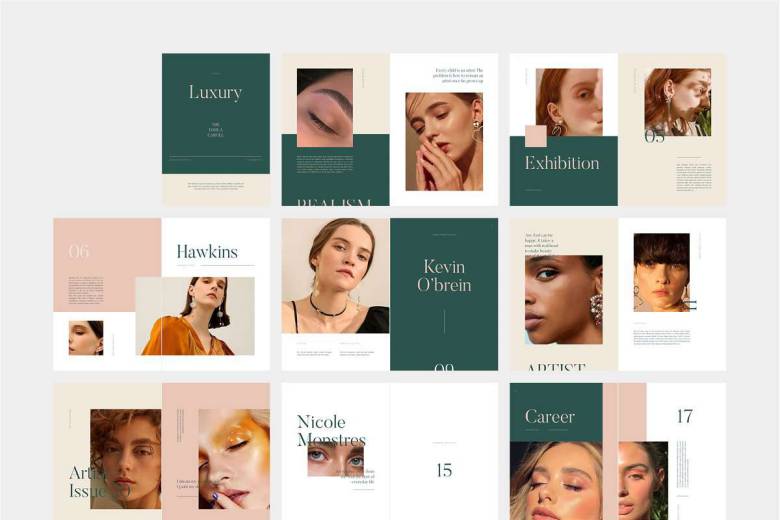 indesign字体大小-indesign排版模板30个自定义页面2种尺寸的化妆艺术作品集