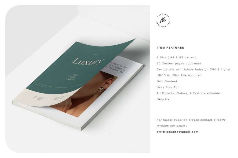 产品特点:30个自定义页面文档2种尺寸(A4和美国信纸)母版页兼容版本Adobe indesign CS4+网格内容使用免费字体和系统字体所有对象,颜色和文本都是可编辑的包含的文件:.INDD文件.IDML文件帮助文件注意:预览中的所有图像均不包含在内