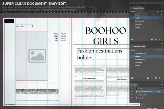 时尚MGZ Layout是Adobe InDesign的精美杂志布局。智能,美观和信息丰富的时尚MGZ布局是艺术,设计,摄影,建筑,音乐,电影和表演的杂志布局。时尚MGZ Layout是一款专业品质,易于使用的艺术品。该模板具有最小的设计,出色的空白使用和强大的字体使用,包含了很多适合各种项目的页面布局。布局可以轻松混合和匹配,只需使用供应设计中的元素即可创建自己独特的布局。这是24个独特的页面时尚的InDesign模板 – 时尚,新潮,干净,优雅,专业,重要的多功能。您可以将此模板用于任何行业,如时装,设计,摄影,艺术,社交,人性和商业。