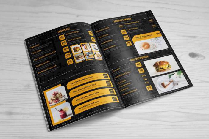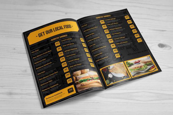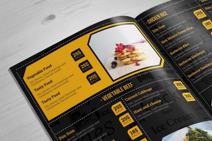 indesign顺序-indesign排版模板12页可调整大小的A4尺寸餐厅食物菜单黑