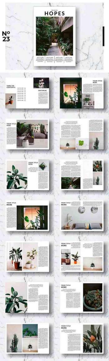 indesign 复制-indesign排版模板白色空间和透气性的绿色植物家居装饰杂志画