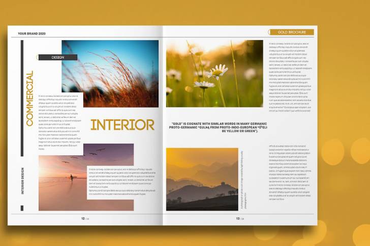 开发indesign插件-indesign排版模板完全可编辑的时尚金色主题企业杂志画册