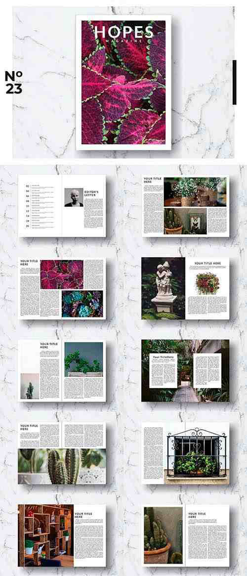 indesign插件安装-indesign排版模板时尚高品质的白色空间和透气性的植物手册