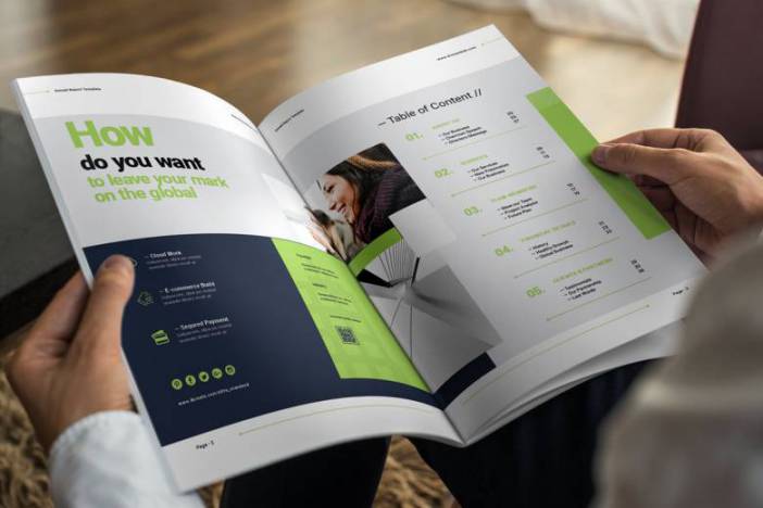 indesign打印-indesign排版模板40个页面绿色主题企业简介年度报告杂志