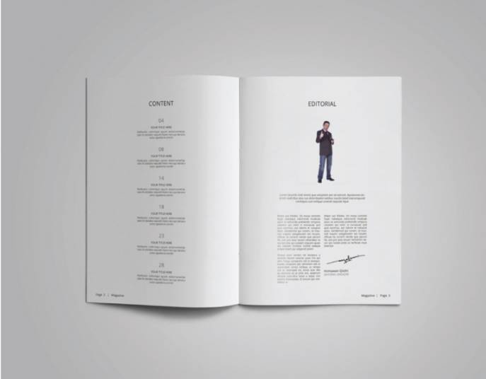 这是一个干净,专业设计的30页杂志模板,A4和Letter尺寸。易于替换图像和文本。