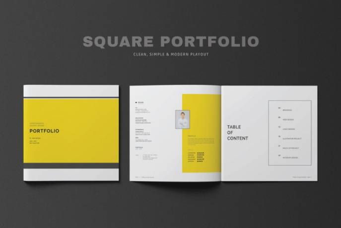这是28页的方形组合/小册子/目录模板,非常适合从事产品/图形设计组合、室内设计目录、产品目录和基于代理的项目的设计师使用。