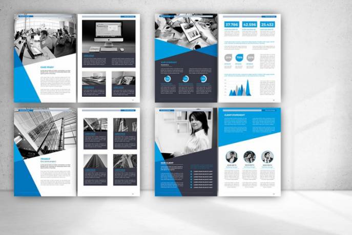 indesign替换图片-indesign排版模板蓝色主题商业提案企业册