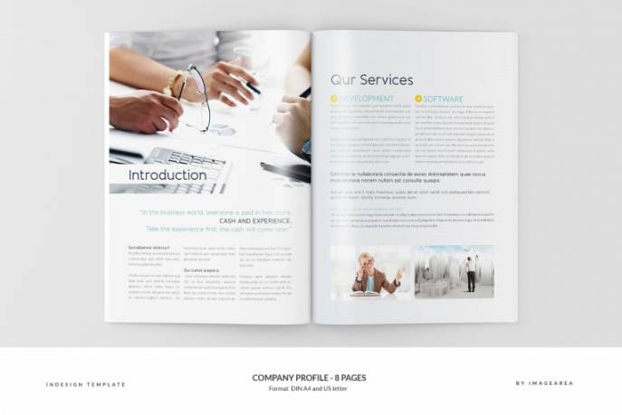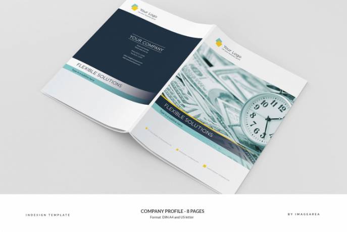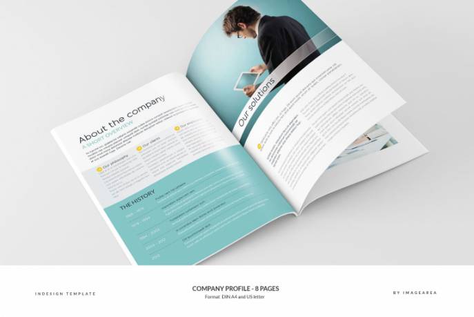 这是一个8页的公司手册的InDesign模板。该格式为 DIN A4 (8.2×11.6 英寸) 带有 3 mm出血线 和 US letter (8.5 x 11 英寸) 带有 0.125 英寸出血线,文件是完全可编辑和打印就绪。