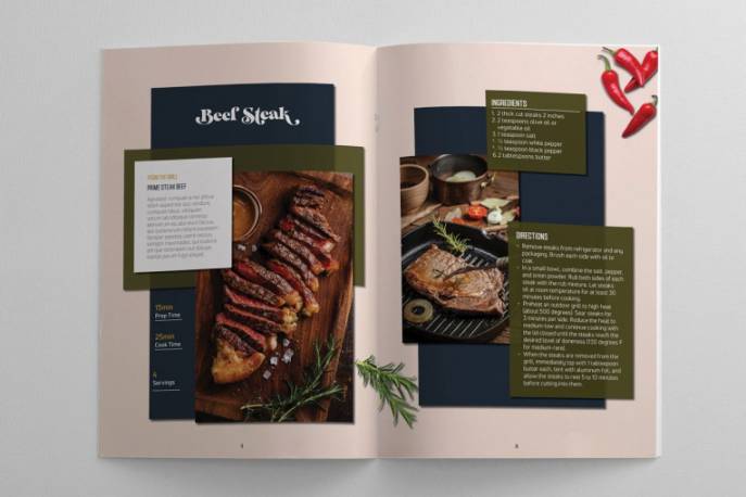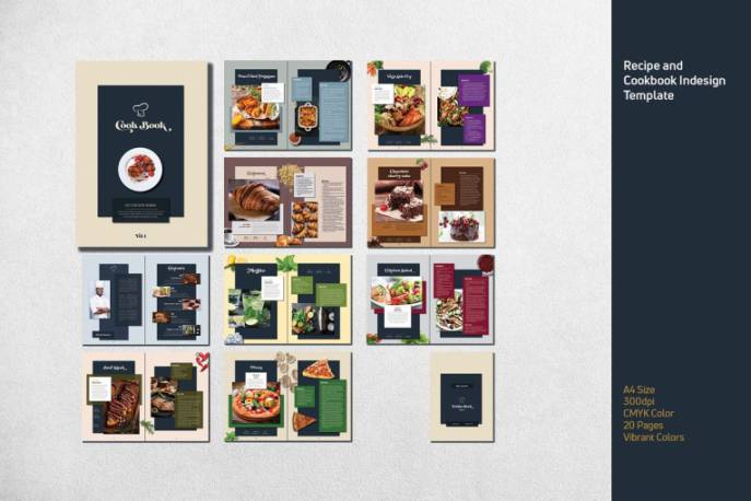 此模板适用于任何食品主题相关用途,但主要用于烹饪功能。特点:A4尺寸(210mm)20个页面预留3mm出血位包含INDD+IDML文件