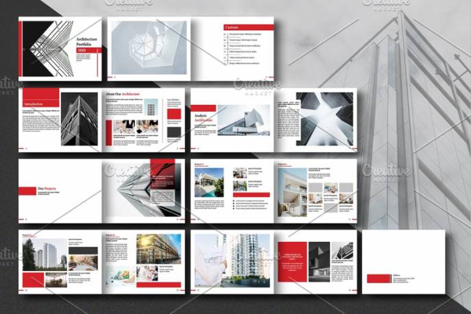 indesign 4-indesign排版模板建筑作品集手册杂志册