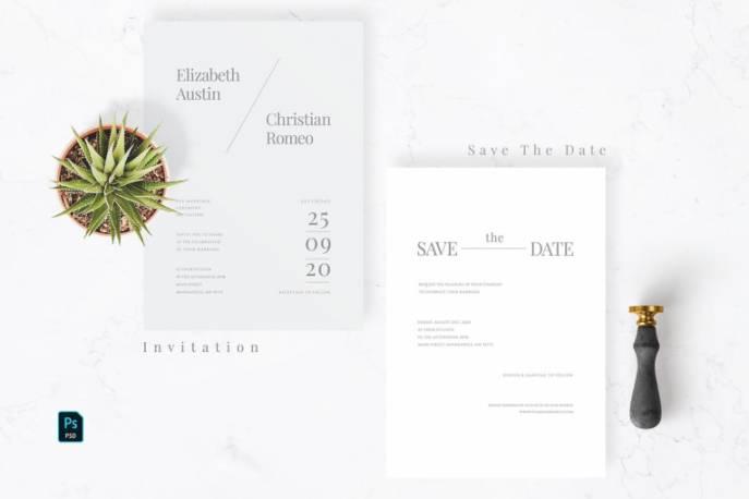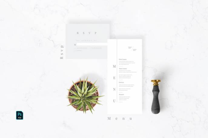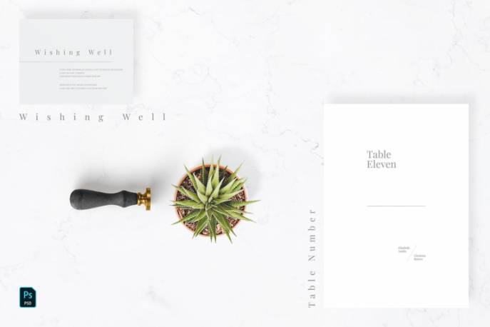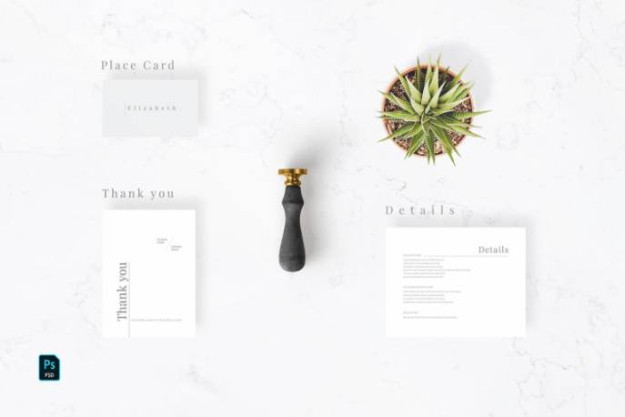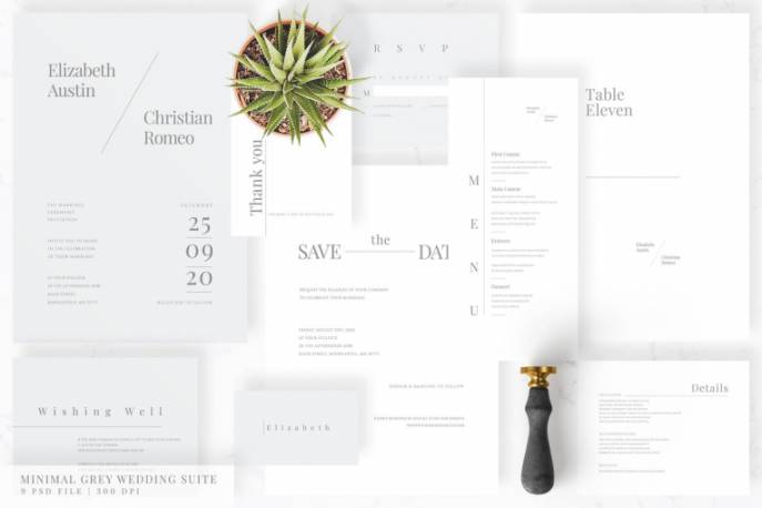 高品质的时尚高端简约婚礼VI设计模板(psd),最小的灰色婚礼套件包括9个PSD文件项目: