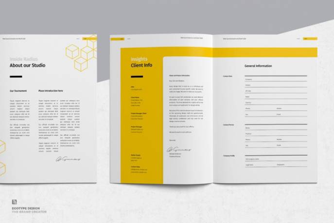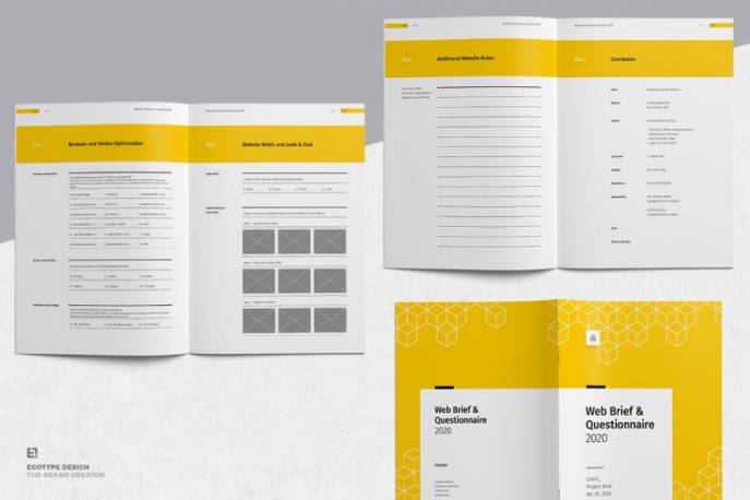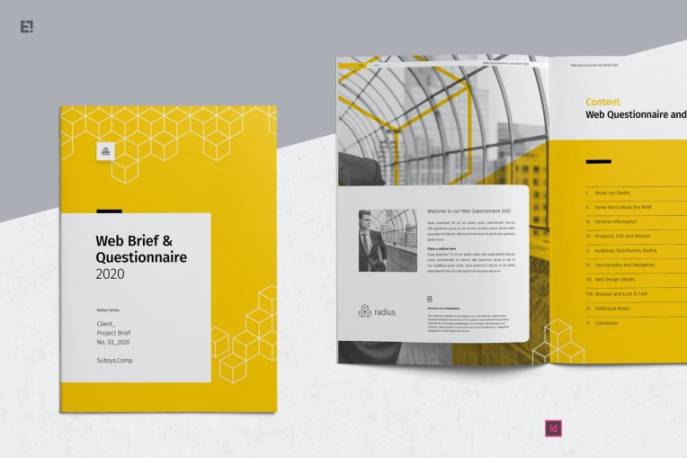 创意企业的最低限度和专业问卷调查手册模板,在Adobe InDesign和Photoshop中以国际DIN A4和美国字母格式创建。二维,即用型文件和超级组织的结构使您可以在几分钟内创建心情板。