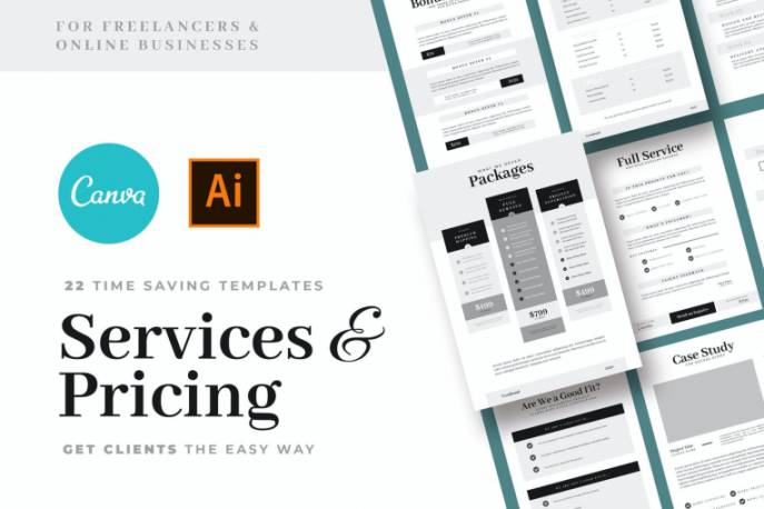 时尚高端专业的服务和定价指南品牌手册画册宣传册杂志版式设计海报设计模板-AI,EPS,使用这些模板,您可以使客户的入职过程更快,更轻松,同时看起来像是一个专业人员。它适用于自由职业者,在线企业,尤其是服务企业和企业家。