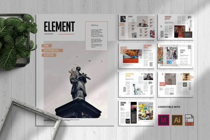 时尚高端多用途时尚杂志宣传册画册品牌手册宣传册房地产楼书杂志设计模板-INDD,AI,EPS,PDF,该文件井井有条,易于定制和编辑。此模板使用InDesign和Illustrator设计,该模板是最小且优雅的设计。