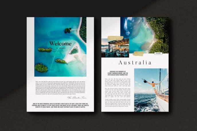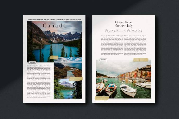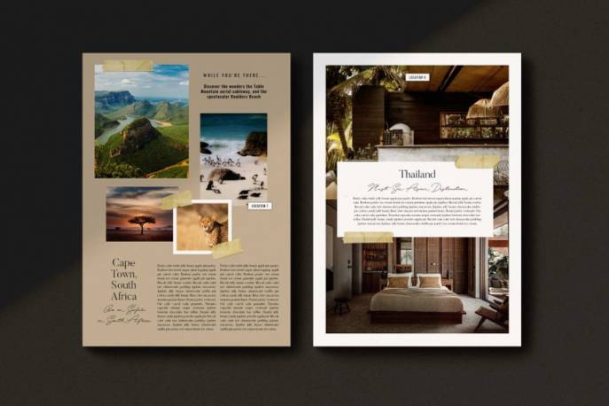 这是一个有趣的拼贴风格设计。该模板具有11页,2种尺寸,段落样式,免费字体和7种美纹纸PNG,以实现类似拼贴的效果。适用于旅游行业,您可以轻松地对其进行编辑和更改。