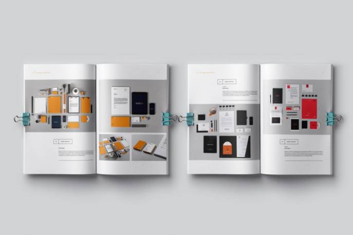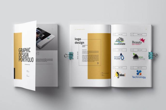 时尚高端简约专业的高品质logo标志设计作品展示品牌手册画册宣传册杂志房地产楼书设计模板(psd),这是48页的最小手册模板,适用于从事产品/图形设计产品组合,室内设计,目录,产品目录和基于代理的项目的设计师。只需放入您自己的图片和文字,即可进行打印。或将其用作专业的在线PDF或电子邮件附件。