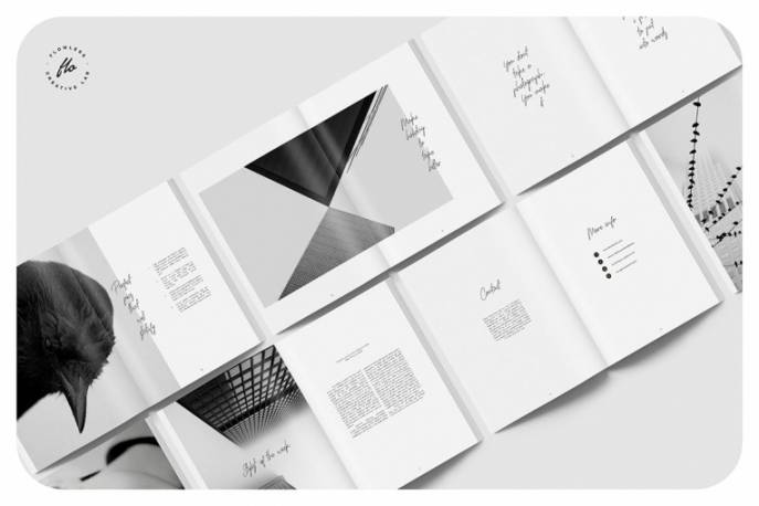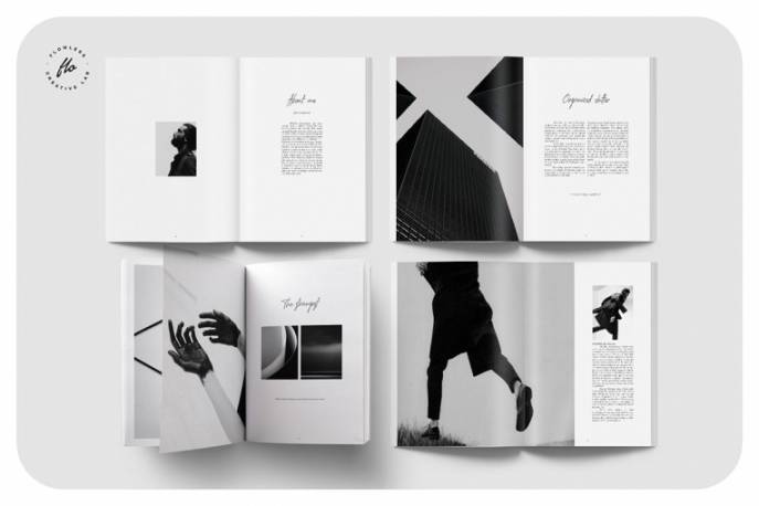 时尚高端简约摄影手册宣传册画册品牌手册房地产楼书杂志书籍装帧设计模板,40个自定义页面文档,2尺寸(A4和美国字母)。