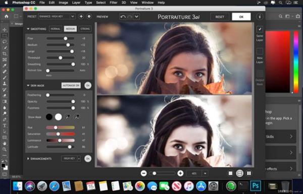 Portraiture for Mac 是一款非常强大的 Photoshop 人像润色磨皮滤镜,主要用于人像图片润色,减少了人工选择图像区域的重复劳动。它能智能地对图像中的皮肤材质、头发、眉毛、睫毛等部位进行平滑和减少疵点处理,同时保持皮肤的色泽。