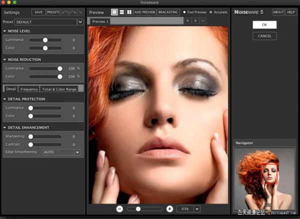 新的独特功能:Noiseware包括三个新的控制集,可实现广泛的微调和卓越的输出质量。现在,您可以按色调和颜色范围调整检测到的噪音水平和噪音抑制水平。Noiseware的新DetailGuard根据色调范围和处理程度保留图像细节,从而保护图像细节免于过度改动。