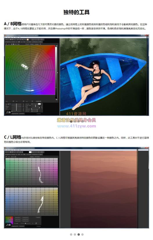 比photoshop强大的是,这个软件可以针对不同饱和度、不同亮度、不同色相的颜色分别做调整,使用该软件还可以实现自动颜色匹配;可以在不改变白平衡的前提下更改中性灰的色相;更改目标颜色的色相、饱和度而不影响中性灰;仅调整目标颜色的对比度而不影响其他部分;更改具有相同色相,不同亮度颜色的饱和度;更改图片中部分颜色的白平衡而保持其他部分不变等功能。